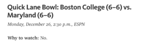 The national media is quick to remind us that the 2016 Quick Lane Bowl between BC (6-6, 2-6 ACC) and Maryland (6-6, 3-6 Big Ten) looks like a dud on paper: